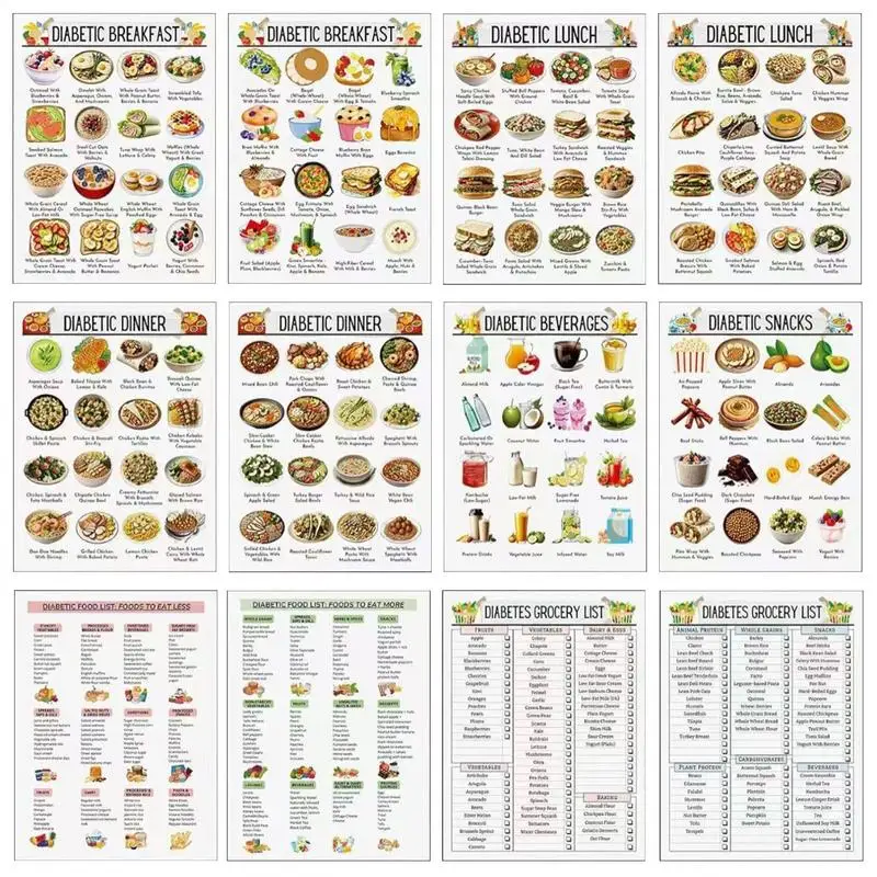 The “12pcs Low Sugar Food Chart Low Carb Diet Nutrition List Food Information Guide Poster” serves as a visual aid, simplifying the process of food selection and meal planning. It typically includes: