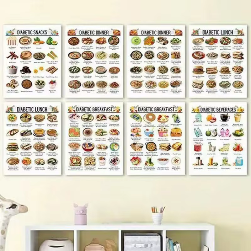 The “12pcs Low Sugar Food Chart Low Carb Diet Nutrition List Food Information Guide Poster” serves as a visual aid, simplifying the process of food selection and meal planning. It typically includes: